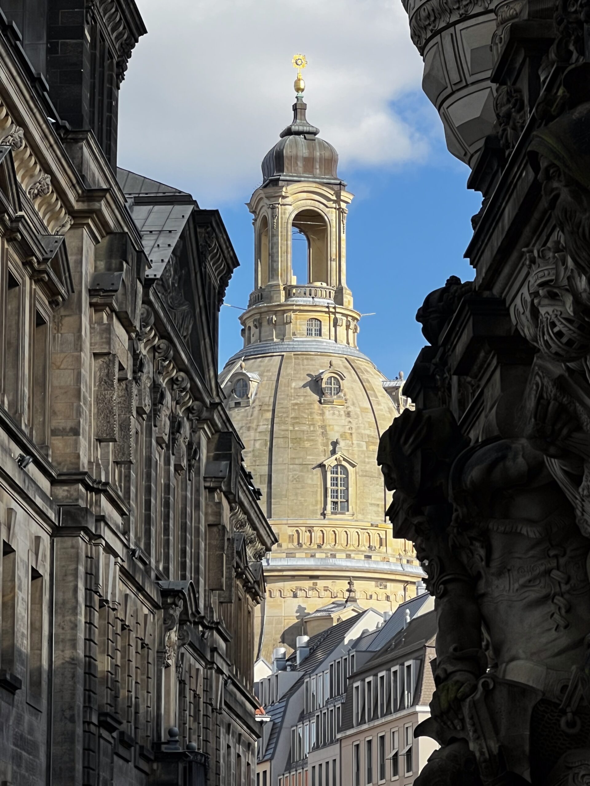 Die Dresdner Frauenkirche ist ein Mahnmal, ein Symbol und ein Wunder zugleich. Nach dem Zweiten Weltkrieg wurde sie über Jahrzehnte als Trümmerberg belassen. Erst nach der Wiedervereinigung Deutschlands wurde sie mithilfe internationaler Spenden – darunter besonders viele aus Großbritannien und den USA, einstigen Kriegsgegnern – originalgetreu wiederaufgebaut und im Jahr 2005 geweiht. Der Kontrast zwischen den hellen, neu gemeißelten Steinen und den dunkel verwitterten Originalsteinen, die sorgfältig in den Neubau integriert wurden, macht die Kuppel zu einem lebendigen Denkmal der Geschichte.